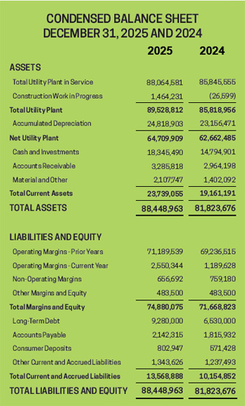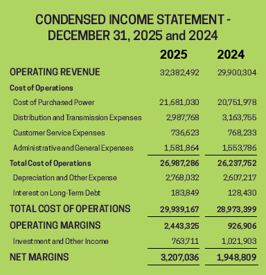 In addition to purchased power costs, the District spends dollars to keep the electric system reliable and efficient. Operation and maintenance expenses (less power cost) were $5.306 million in 2025, compared to $5.486 million in 2024.
